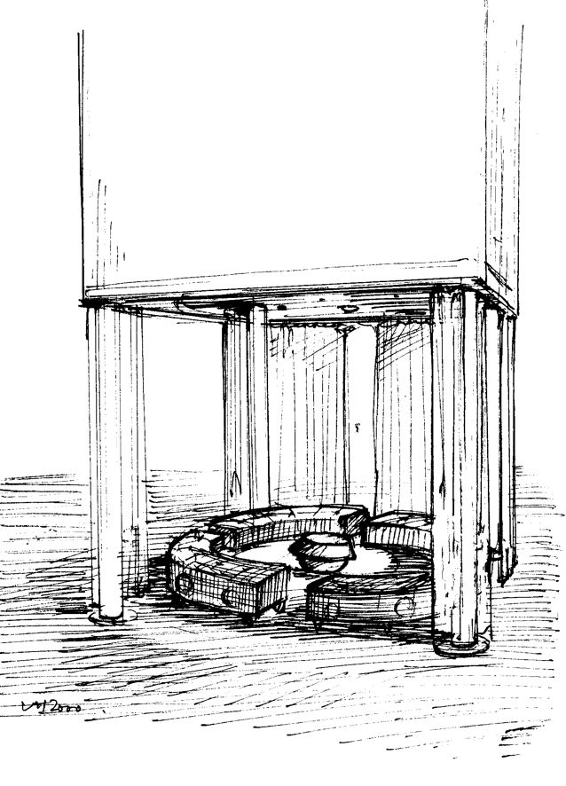 Ontwerpschetsen bij de enscenering ‘Het Interview dat sterft’ van Jan Fabre, van Luk van der Hallen en Paul Sochacki, Dommelhof, Neerpelt